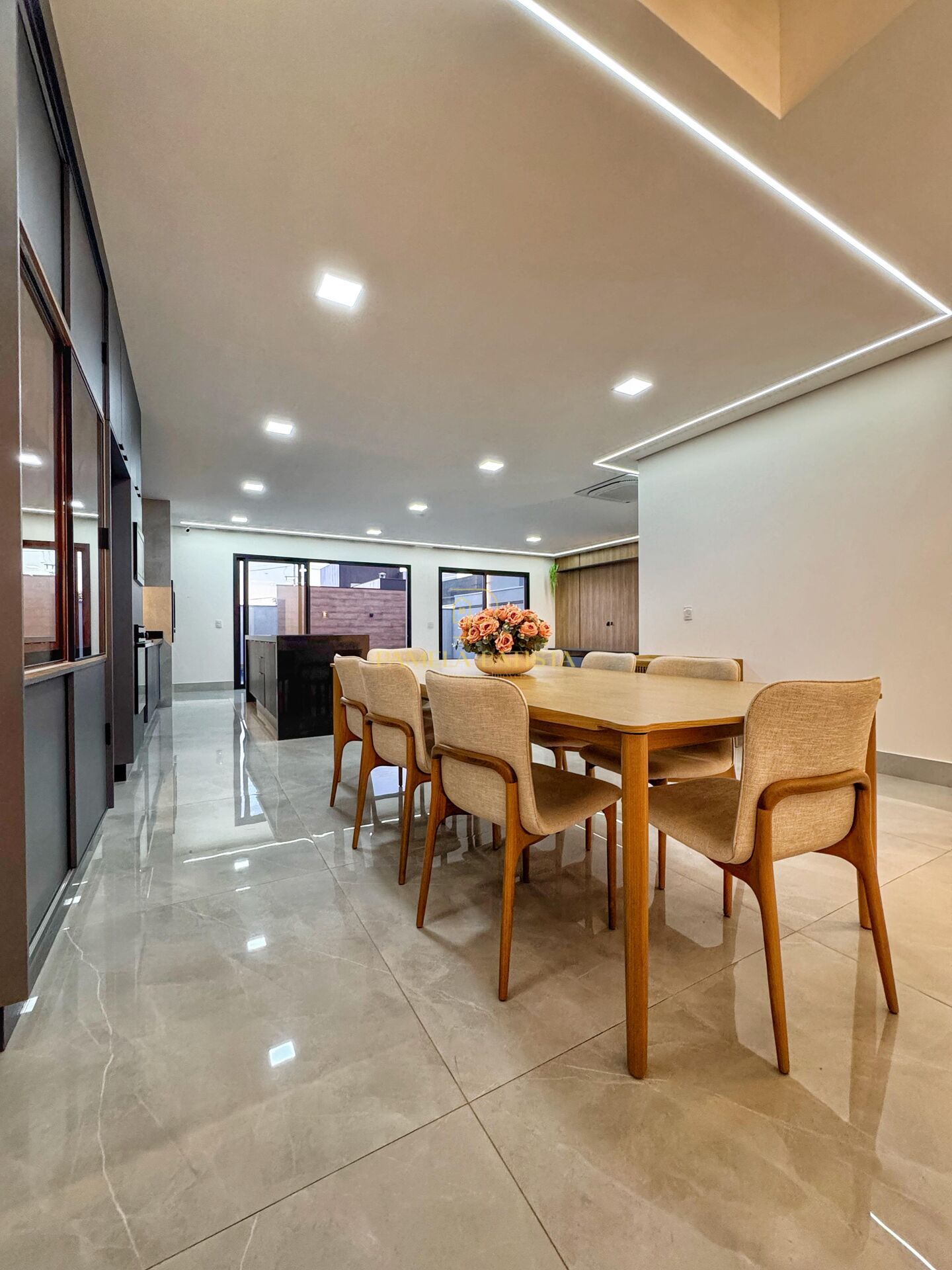 Com 299 m2 de construção em um terreno de 311 m2 , essa casa encanta com seu estilo moderno e requintado. Todo o imóvel é revestido em porcelanato, possui pé direito alto e acabamento de muito bom gosto e sofisticação. Ideal para você e sua família desfrutarem de momentos únicos, o imóvel oferece ambientes integrados e harmoniosos, proporcionando conforto e aconchego .