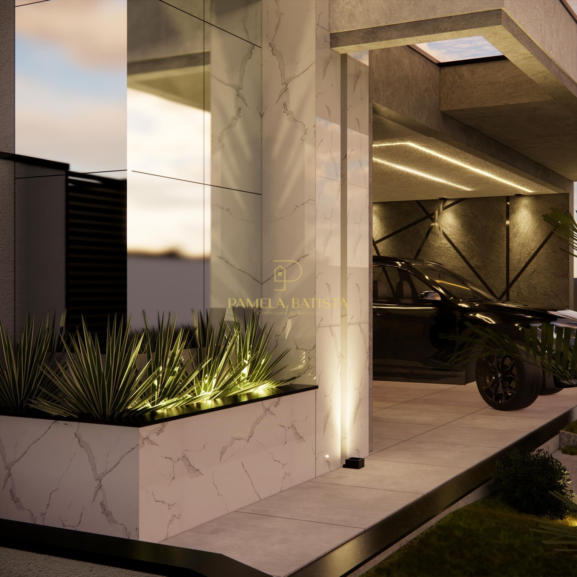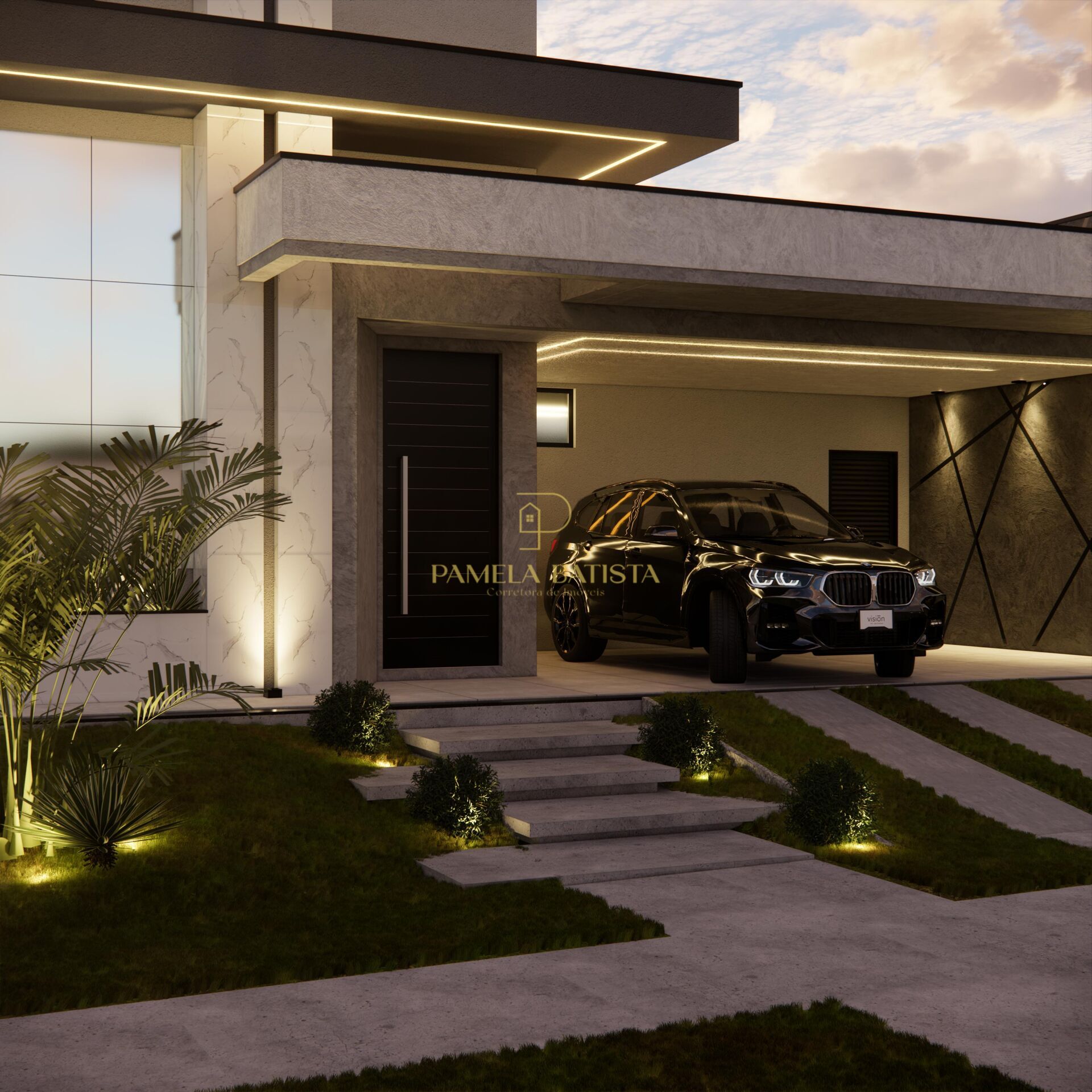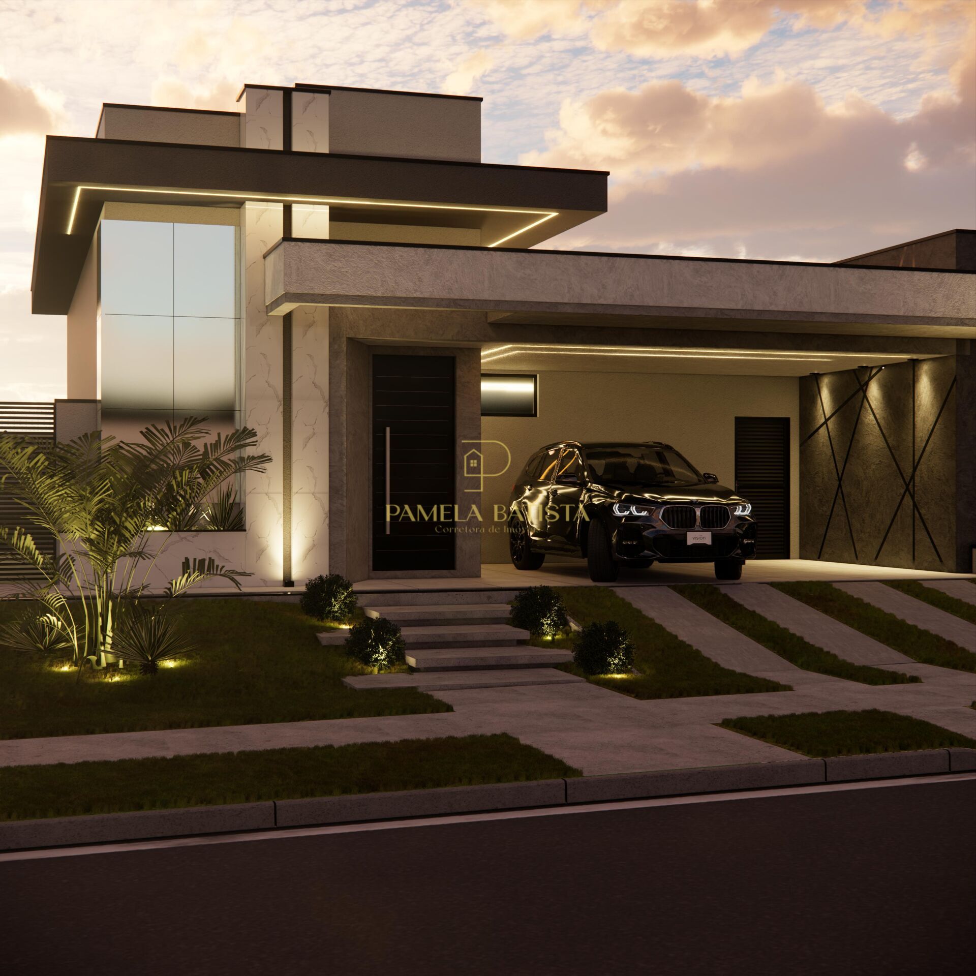 * Área externa com piscina com iluminação e paisagismo